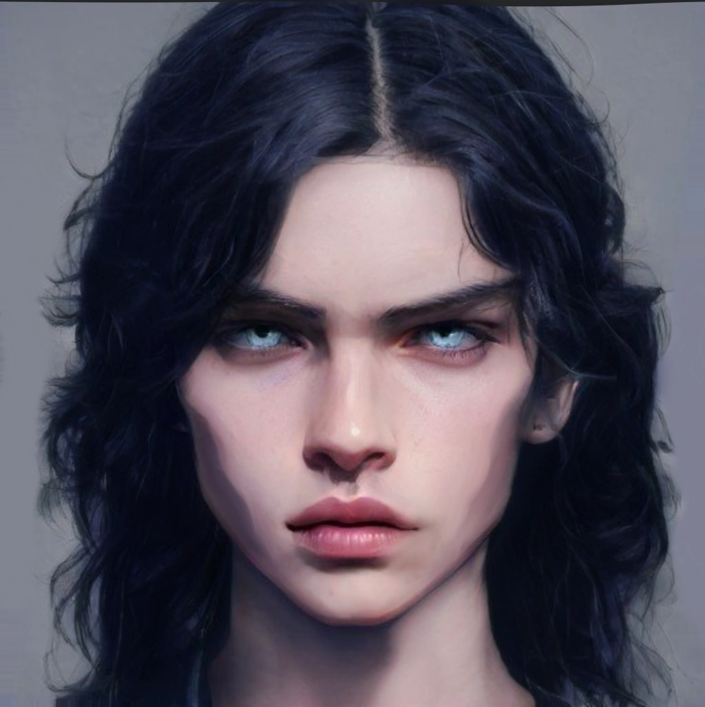 Ash is described as a strikingly handsome man, not just in comparison to regular humans, but to the enhanced and beautiful features of fae. He has bright silver eyes, high cheekbones, a sharp jawline and slightly pale skin. He has thick, tossled midnight black hair that ends just above his shoulder, and jagged face framing "bangs". He is lean, strong and tall, with the typical pointed ears of a faery and an earring in one. Meghan first described him as looking "cold, hard, and inhuman". But then she describes him as a handsome inhuman faery that is a daredevil and is loyal person who loves to spar with Glitch and Puck-Robin Goodfellow. He is referred to as one of the most beautiful Fae.